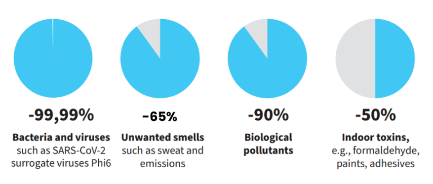 The result: clean, safe and healthy air — both for everyday use in homes and offices as well as in areas with particularly high requirements such as healthcare facilities or public transport.