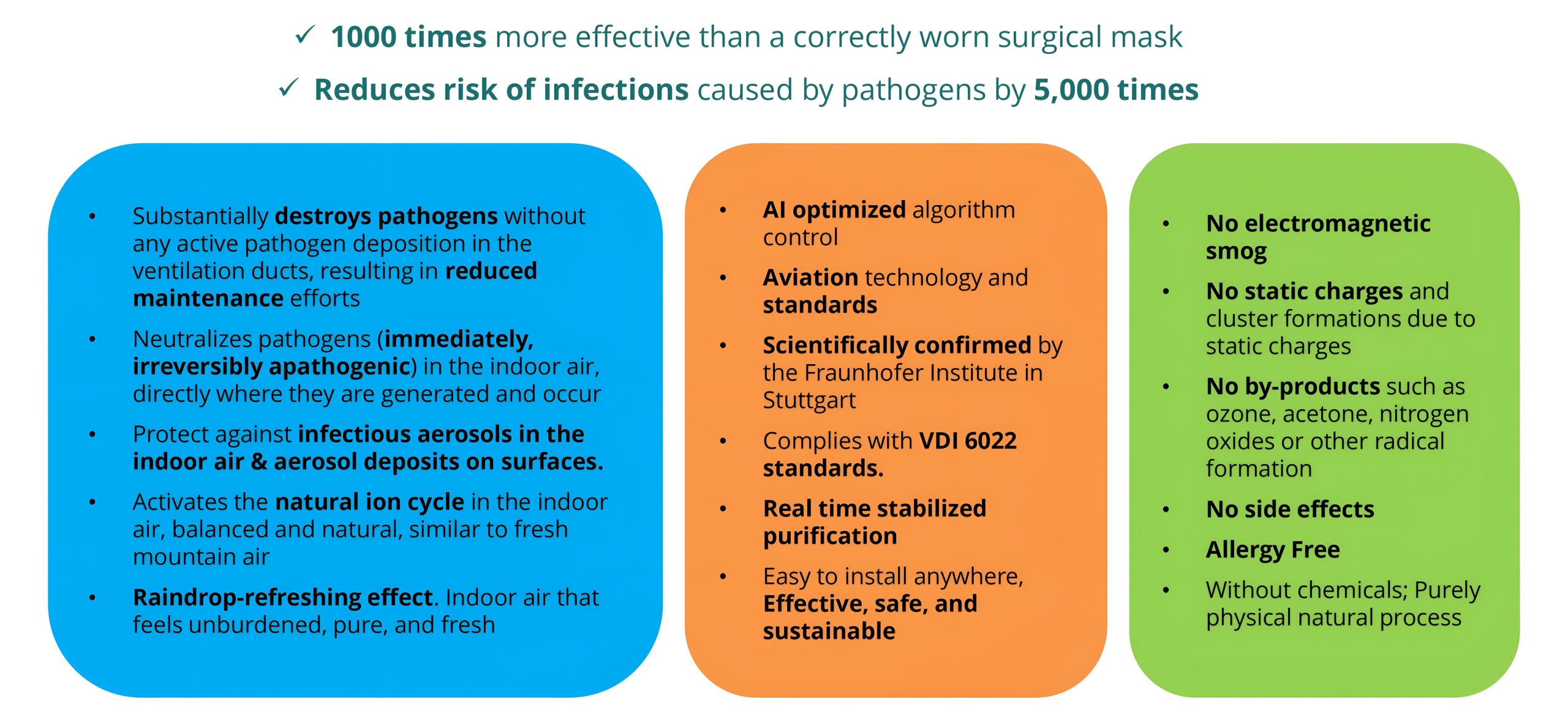 99.99% Virus reduction (scientifically confirmed by Fraunhofer Institute)